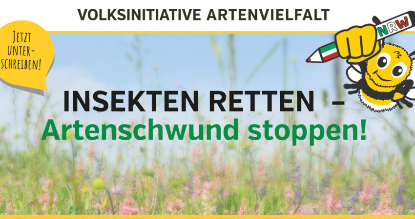 Mit einer gemeinsamen Aktion vor dem Landtag in Düsseldorf haben die drei großen nordrhein-westfälischen Naturschutzverbände Bund für Umwelt- und Naturschutz Deutschland (BUND), Landesgemeinschaft Naturschutz und Umwelt (LNU) und Naturschutzbund Deutschland (NABU) heute die landesweite Volksinitiative Artenvielfalt gestartet. Unter dem Motto „Insekten retten – Artenschwund stoppen“ sollen in den nächsten Monaten mindestens 66.000 Unterschriften gesammelt werden. Dann muss sich der NRW-Landtag mit der Volksinitiative beschäftigen. Die Naturschutzverbände rufen alle Bürgerinnen und Bürger in NRW dazu auf, mit ihrer Unterschrift ein klares Signal für mehr Artenschutz zu setzen.