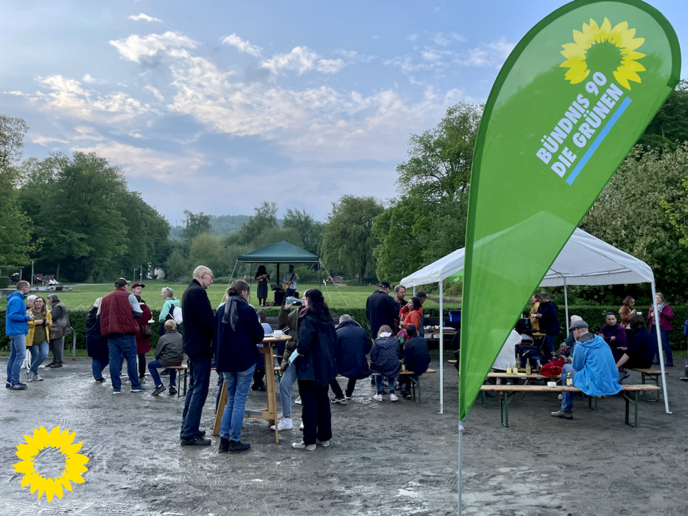 Etwa 70 Menschen besuchten das dritte GRÜNE Musikevent im Mehrgenerationenpark und lauschten dem Konzert von White Coffee. Bei Getränken und Suppe gegen eine kleine Spende kamen am Samstagabend Bürger*innen aus Rödinghausen und Umgebung gemeinsam ins Gespräch. Auch mit dabei Andrea Haack als Landtagskandidatin für den Wahlkreis 91 (Herford II - Minden-Lübbecke III), die in einer kurzen Ansprache den Blick auf die Landtagswahl am 15. Mai und die Ziele der GRÜNEN richtete.