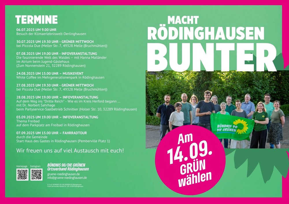 Du möchtest gemeinsame Themen im Ort voranbringen? Der Ortsverband BÜNDNIS 90/DIE GRÜNEN freut sich über Rödinghauser Bürger*innen, die aktiv werden möchten.